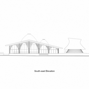 این مجموعه زیبا ،در پلانی مستطیل شکل و راست خط طراحی شده است. فضاهای داخلی از مجموعه 29 ستون مخروطی شکل و 2 گنبد تشکیل شده اند. طبق اشاراتی که در بالا شد ،با توجه به هدف پروژه ،اکثر متریال استفاده شده ، بامبو می باشد . نماهای جانبی این رستوران شیشه ای با پشتیبانی از ستون های بتنی می باشد . استفاده از متریال طبیعی بامبو نیز دارای فرآیند خاص خود می باشد ،که دارای مراحلی چون مجاورت با گرما و آتش ، غوطه ور شدن در آب ، ضدعفونی نمودن آن و بخاردهی و ....است که به حدود 4 ماه زمان نیاز دارد .