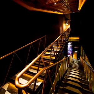 به گفته طراح پروژه ، این کافی شاپ و بار به صورت مدرن و زیبا و در مجاورت مرکز منطقه ای تجاری در جاکارتا ، طراحی شده است . طراحی داخلی فضا به گونه ای است ،که بخشی از حجم دارای پوشش شفاف بوده و مخاطب قادر به روئیت آسمان شهر و تا حدی خط افق منطقه می باشد . برای تجربه حضور در این فضا می بایست از مسیر و پلکان مستقیم که در میان کریدوری طولانی و نسبتا تاریک واقع شده است ، عبور نمایید . در اولین گام حضور در این فضا ، الگوی مثلث های چوبی بر روی سقف ، قفسه ها و طبقه بندی انواع نوشیدنی ها و نیز دو عدد لوستر کریستال توجه مخاطب را جلب می نماید .
