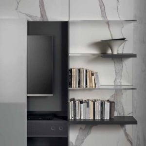 اغلب ما در طراحی میز تلویزیون و لوازم جانبی آن،همیشه تلویزیون را به عنوان المانی که همیشه در معرض دید و نمایش است،درنظر می گیریم،اما اگر عده ای موافق این مطلب نباشند و نخواهند تلویزیون همیشه در نمای فضای نشیمن به چشم آید،چه باید کرد؟