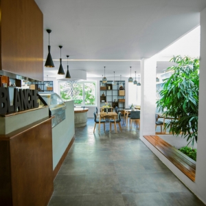در پروژه کافی شاپ بلانش اهمیت به پوشش گیاهی یکی از مهمترین بخش های طراحی بود، بطوریکه چشم کاربر به هر زاویه ایی از پروژه معطوف گردد گوشه ایی از آن صحنه با سبزیِ پوشش گیاهیِ طبیعی تزیین میشود.