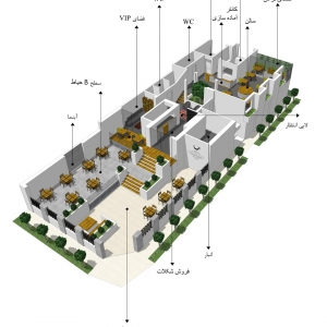 2. فضای تِراس: که به دلیل بی مرزی با فضای داخلی گرم و دلنشین و پوشیده از گیاه های ریزشی میباشد.