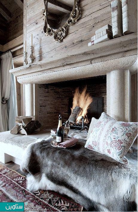 - گوشه دنج زرق و برق دار کنار شومینه، با خز مصنوعی ،بالش و نوشیدنی، احساس گرم و راحتی را در شما ایجاد میکند.