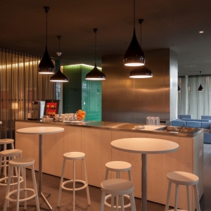 حجم منحصربفرد و عظیم این ساختمان در ارتباط با چشم انداز اطراف طراحی شده , به گونه ای که با هم ادغام شده اند و در تبادل هستند ، در مرکز این پروژه دارای یک هتل چهار طبقه است همچنین منطقه ورودی و پذیرش به کافه بار منتهی میشوند , قفسه های نوشیدنی و رستوران به تراس 18 متری که در زیر ساختمان واقع شده متصل میشوند , نمای منحصربفرد ساختمان با پانل های چوبی به گونه ای که موجدار به نظر میرسند برای فضاهای داخلی نور متفاوتی را ایجاد کرده طراحی شده اند.