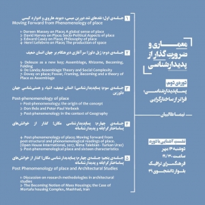 ـ جلسه چهارم: پساپديدارشناسي مکان؛ گذار از خوانشهاي پساساختارگرايانه و پديدارشناسانه