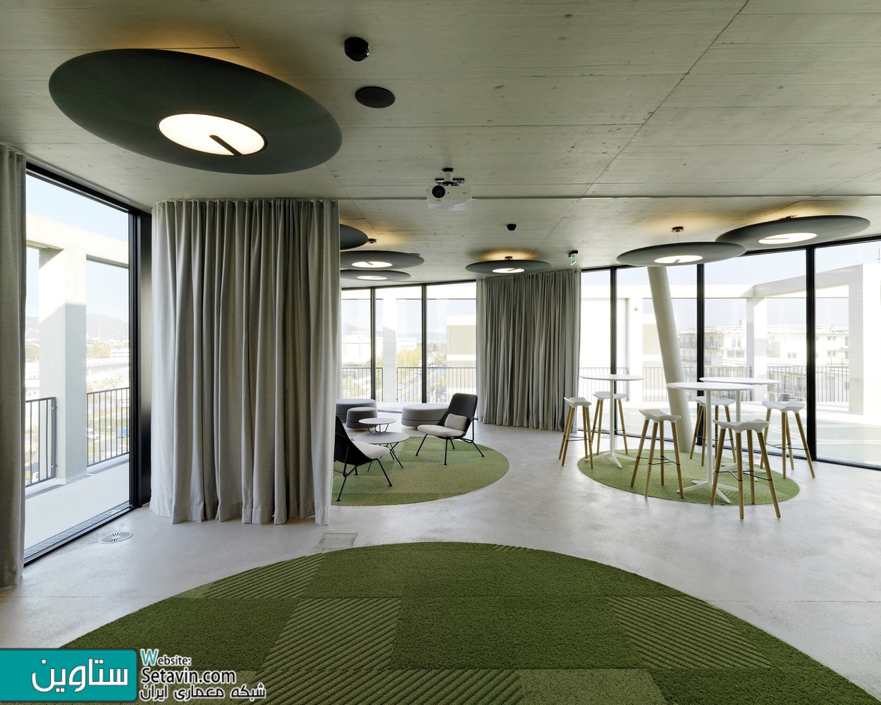 اولین شبکه نمای خارجي بتني و سفيد ساختمان به عنوان یک سايه بان خودکار خورشيدي مورد استفاده قرار مي گيرد که بنا بر نوع نیاز و همچنین تغییر زاویه تابش خورشید در روز قابل تنظیم و تغییر می باشد. دومين بخش نمای خارجي ساختمان که يک منطقه ايوان مانند است به عنوان يک پل ارتباطی بين بخش های داخلي و خارجي ساختمان عمل مي کند به ويژه اينکه در فصل تابستان فضاي باز بيرون را تحت پوشش قرار مي دهد. و در نهایت سومين لايه شفاف اجازه مي دهد نور بيرون وارد فضاي دفتر شود. با ستاوین همراه باشید , اين سيستم چند لايه، کاربری های متفاوت برای کاربران ایجاد نموده است و البته که یک راهکار مناسب برای حفظ انرژی نیز می باشد.