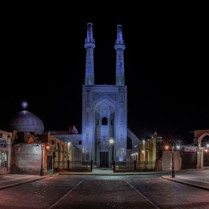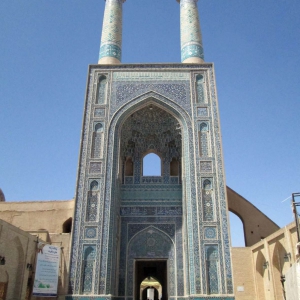 مسجد جامع کبیر یزد، یکی از شاهکارهای تاریخی ایران بوده که در هر گوشه و کنار آن، یادگارهایی از دوران گوناگون برجای ماندهاست. تاریخچه و ساخت مسجد جامع از دوران پیش از اسلام آغاز شده و پایان کار آن به دهه اخیر برمیگردد. این مسجد یکی از زیباترین مساجد دورهٔ تیموری است که از نظر کاشیکاری، سَردَر رفیع، مناره ها و کتیبهٔ آن در عداد زیباترین شاهکارهای معماری قرن نهم هجری قمری میباشد. ارتفاع منارهها 52 متراست و گرچه ساختمان اصلی مسجد را به قبل از دورة تیموری نسبت میدهند ولی ساختمان فعلی بر طبق کتیبههای موجود نشان میدهد که در دورهٔ تیموری بنا گردیدهاست. کتیبههای مسجد یکی به خطّ کوفی آجری و دیگری به خطّ ثلث سفید بر روی کاشی لاجوردی است. در متن کتیبه سَردَرْ، نام شاهرخ تیموری و سلطان جهانشاه و تاریخ ۸۶۱ هجری قمری خوانده میشود. دردوران پیش از اسلام درمکان کنونی مسجد جامع، احتمالاً آتشکده ساسانی برپابوده که تا دوران پس از اسلام نیز دوام داشتهاست. بنای کنونی مسجد با وسعتی حدود ۱۰٬۰۰۰ مترمربّع مشتمل بر سَردَر ورودی و جلوخان، صحن وسیع، رواقهای جانبی صحن، ایوان، گنبدخانه و شبستانهای طرفین آن، شبستان بزرگ ستوندار، کتابخانه، تزیینات غنیّ و زیبا و کتیبهها و سنگ نوشتههای تاریخی و غیر تاریخی است. خاورشناسی به نام ماکسیم سیرو اعتقاد دارد نخستین مسجدی که به جای آتشکده، به نام مسجد عتیق شکل گرفته، مربوط به سدههای اولیه اسلام است.( منبع : ویکی پدیا )