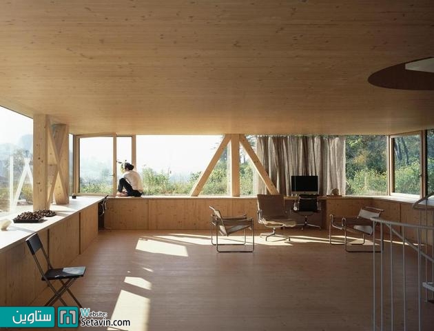 - 5.ایده ای جالب و غیر معمول،دفترکاری که برروی سطح زمین قرارگرفته و به راحتی می توان از پنجره های آن به فضای باز بیرون راه یافت.