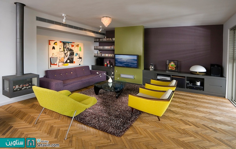 این نشیمن دارای طراحی مدرن و ازنظر انتخاب رنگها ،با طراوت و منحصر به فرد است.شما می توانید به سادگی تاثیر کنتراست و تن رنگها را دراین فضا مشاهده کنید.