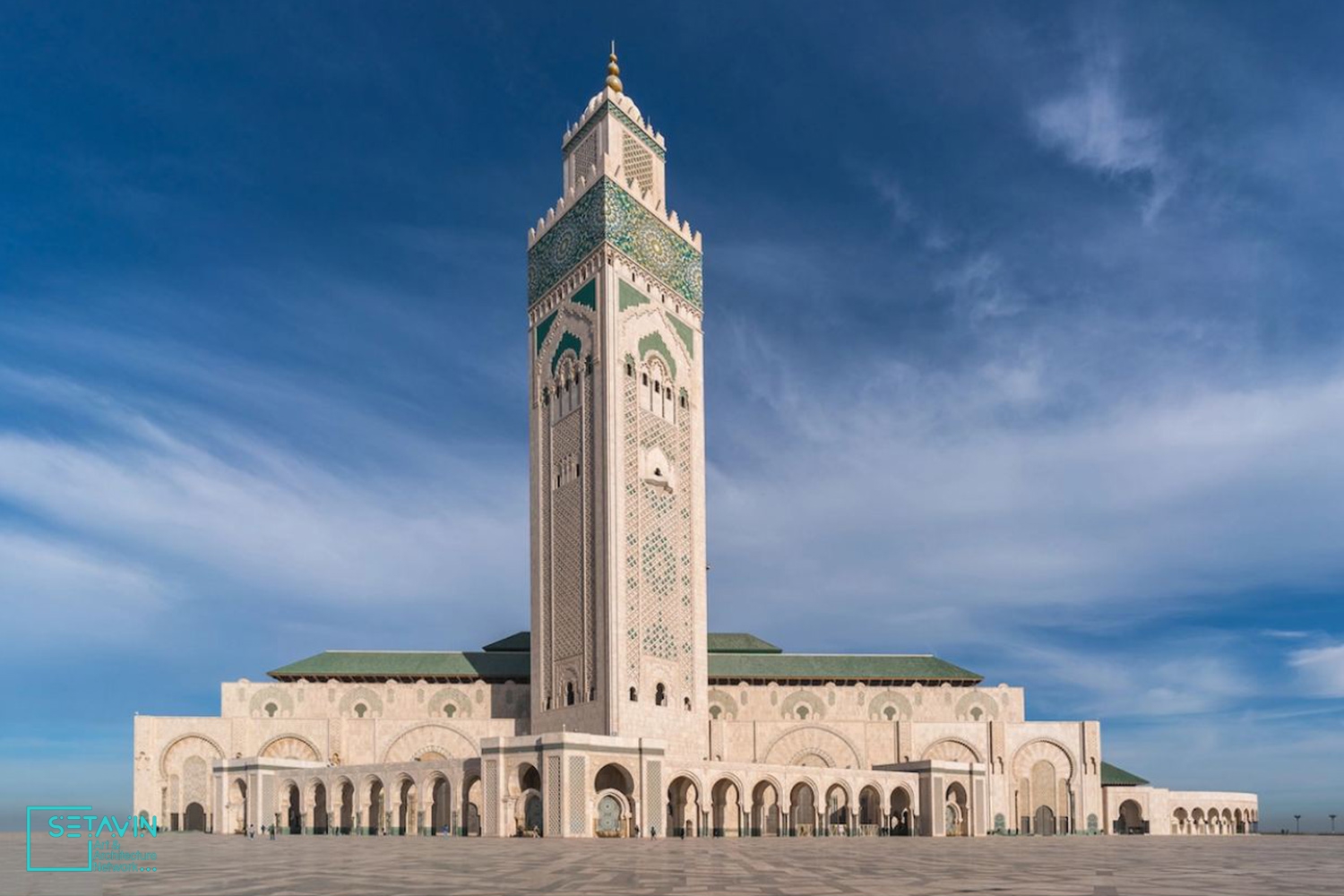 مسجد حسن ثانی در کازابلانکا، مراکش واقع شده است و دارای چند رکورد جهانی از جمله دومین مناره بلند جهان، دومین مسجد بزرگ در آفریقا و هفتمین مسجد بزرگ در کل جهان است. در بالای مناره لیزری وجود دارد جهت مکه را از منارههای خود نشان میدهد که نور آن را میتوان از فاصله چند مایلی در دریا مشاهده کرد که به نمازگزاران کمک میکند تا در نماز جهتیابی کنند.