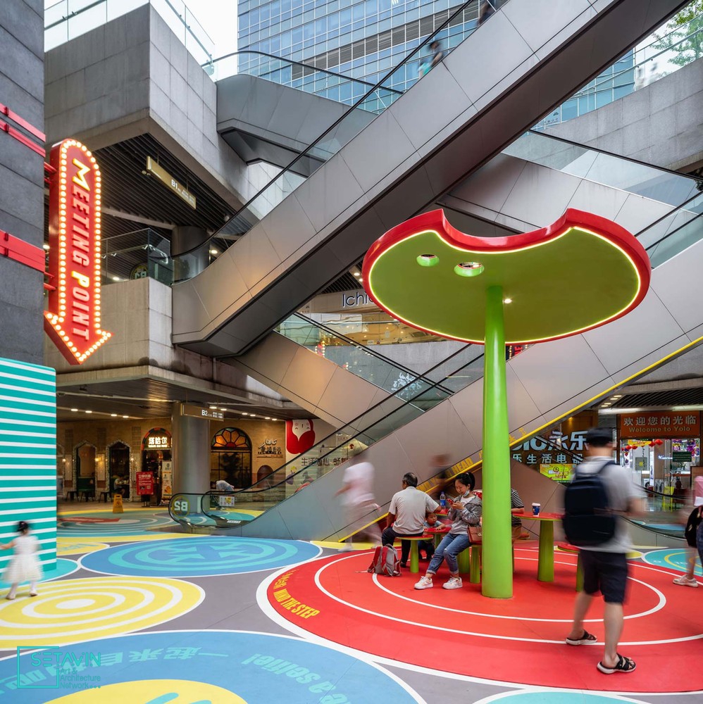 به منظور باززنده سازی این میدان متروکه،تمام فضای زیرزمین با کفپوش های دایره ای شکل رنگی پوشش داده شد . دید از بالا به غنچه های گل ،تقلید شد تا بازدیدکنندگان را در بدو ورود با نگاه از بالا به پایین ،جذب کند.بسیاری از این فضاهای دایره ای شکل، دارای بازیهای تعاملی و پیامهای گرافیکی هستند،که باعث فعال شدن عملکردی فضا شده است.