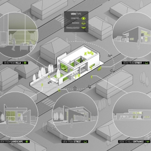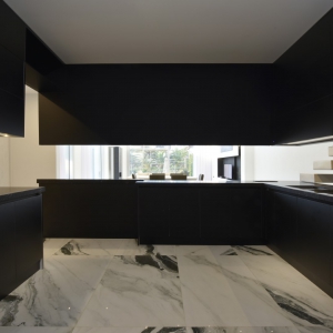 در فضاهای داخلی هم، عناصری چون آشپزخانه شومینه، قاب تلویزیون به شکلی دیزاین شده که با حالت روتین خود متفاوت دیده میشود. به طور مثال آشپزخانه در مرکز طبقه همکف و مابین فضای پذیرایی و حال خصوصی قرار گرفته و از طریق شکاف موجود بین کابینت های پایین و بالا ارتباط بصری بین این فضاها را میسر میکند. یا شومینه در جای خود میچرخد و به راحتی میتوان به هر نقطه ای که نیاز هست چرخوانده شود. با شبکه هنر و معماری ستاوین همراه باشید ...