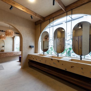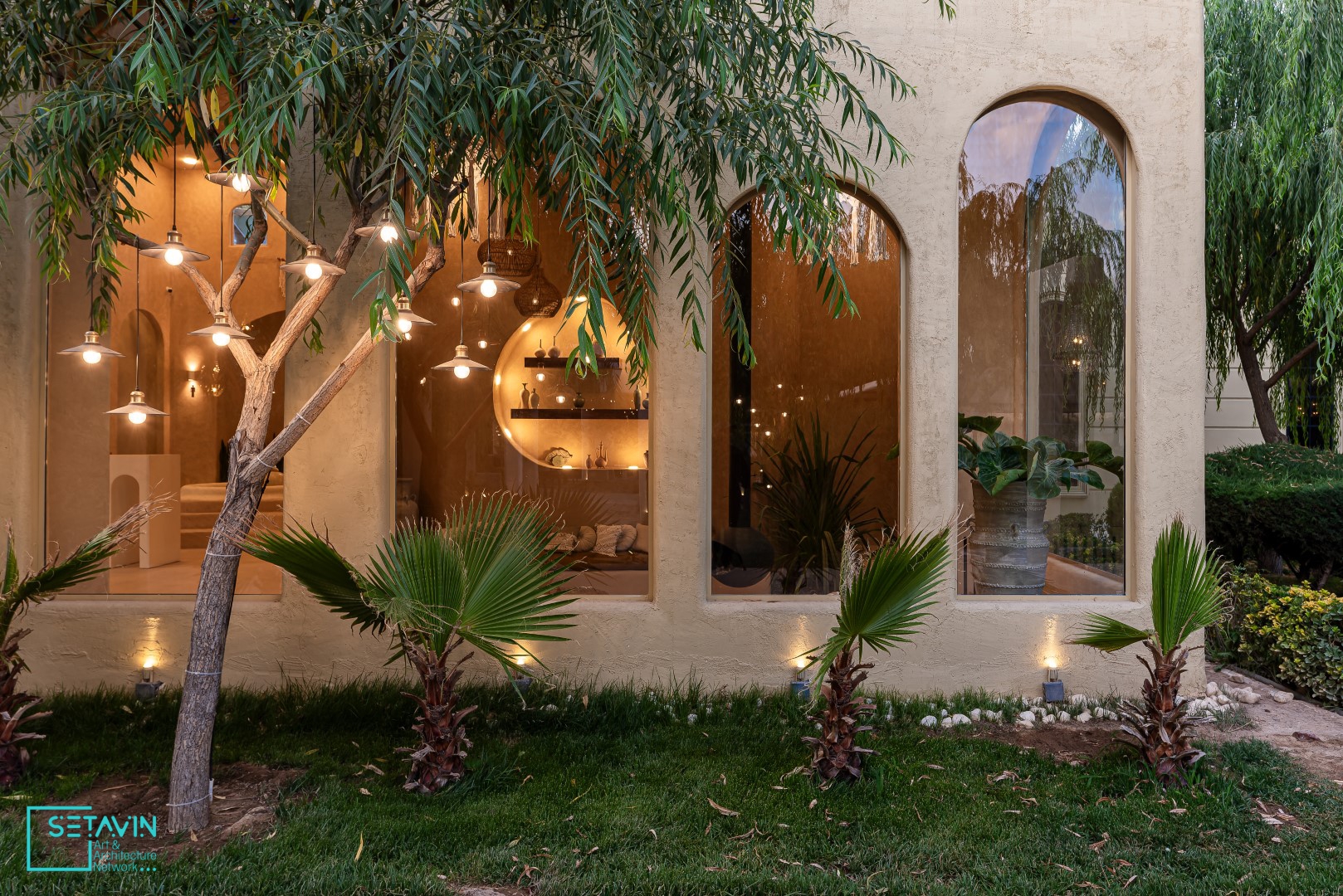 نوع کفپوش ، چراغ های مسیر ، پوشش گیاهی و رنگ و فرم و ... پس از این درب ورودی همه به سبک بوهمیان طراحی شد.