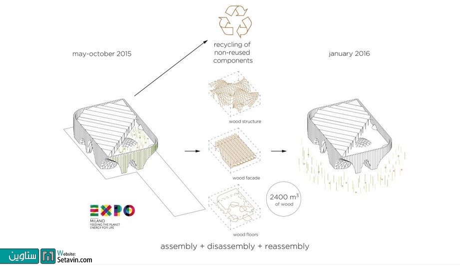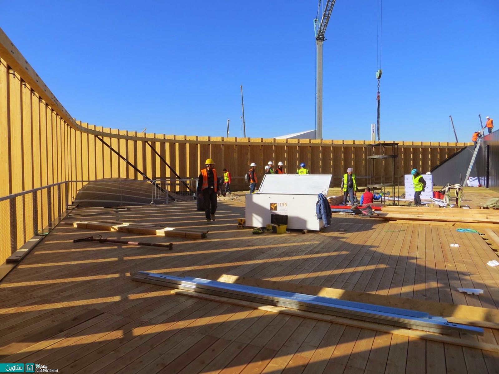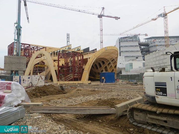 در این قسمت , ستاوین قصد دارد شما را با بخشی از عملیات اجرایی این پروژه آشنا کند ،با ما همراه باشید . . . در ساخت پروژه پاویون فرانسه از جدید ترین ابزار ها و روبات ها برای برش الوار های چوبی که از سیستم های نرم افزاری پیشرفته دستور می گیرند ، استفاده شده است ،بدین صورت می توان اشکال پیچیده و با زوایای مختلف ایجاد نمود . ماحصل این تلاش ها و تکنولوژی سازه ای عظیم و یکپارچه از متریال چوب می باشد .