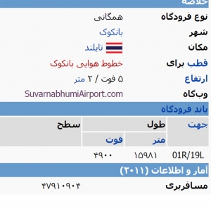 این فرودگاه مرتفع ترین برج کنترل جهان را به طول 132.2 متر دارد.کد اختصاصی این فرودگاه BKK می باشد.